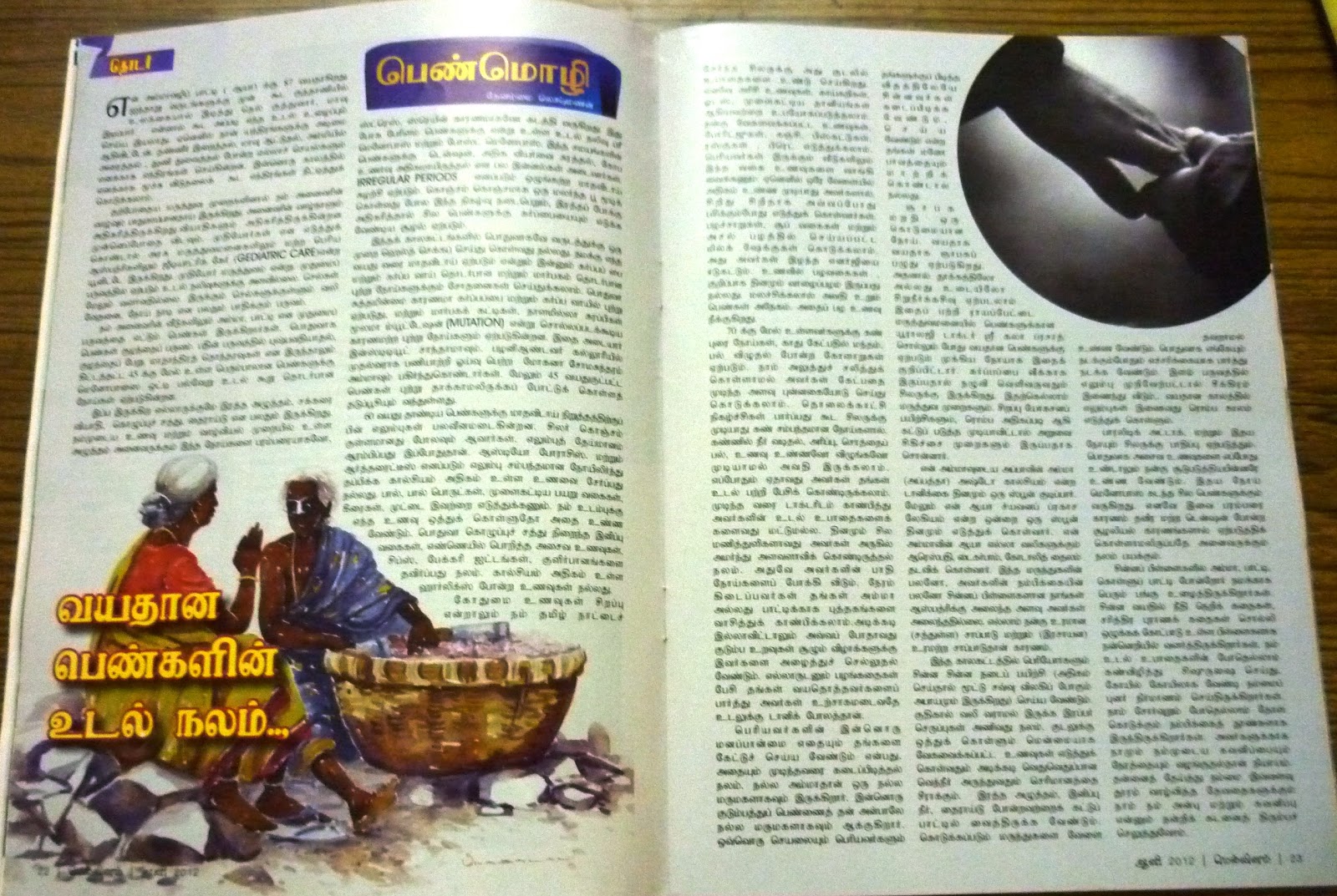 நம் அனைவரின் வீடுகளிலும் அம்மா, பாட்டி என முதுமைப் பருவத்தை எட்டும் பெண்கள் இருக்கிறார்கள். பொதுவாக பெண்கள் குழந்தைப் பருவம். பதின் பருவத்தில் புஷ்பவதியாதல், குழந்தைப் பேறு. மாதாந்திரத் தொந்தரவுகள் என இருந்தாலும் கிட்டத்தட்ட 45 க்கு மேல் உள்ள பெரும்பாலான பெண்களுக்கு மெனோபாஸை ஒட்டி பல்வேறு உடல் கூறு தொடர்பான நோய்கள் ஏற்படுகின்றன.